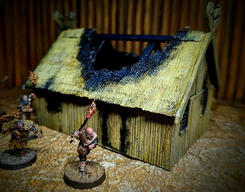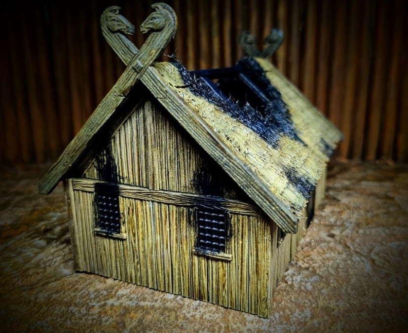 焦げた茅葺きは100均のブラシを使ったよ!!